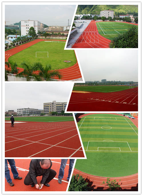 采用國(guó)際田聯(lián)認(rèn)可的復(fù)合結(jié)構(gòu),上層為PU顆;EPDM耐候性環(huán)保彩色顆;旌,機(jī)械噴涂,下層為機(jī)械攤鋪的緩沖底墊。符合專(zhuān)業(yè)田徑運(yùn)動(dòng)員訓(xùn)練標(biāo)準(zhǔn)。標(biāo)準(zhǔn)厚度13mm