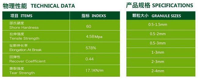 標準型:8毫米黑橡膠顆粒+5毫米EPDM彩色橡膠顆粒