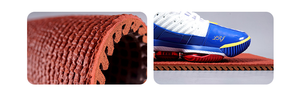 l安全: 獨特的表面凸紋和底部凹巢設計提供了合適的沖擊吸收和能量回送系統,這在有效提高運動成績的同時也保證了運動的安全性。