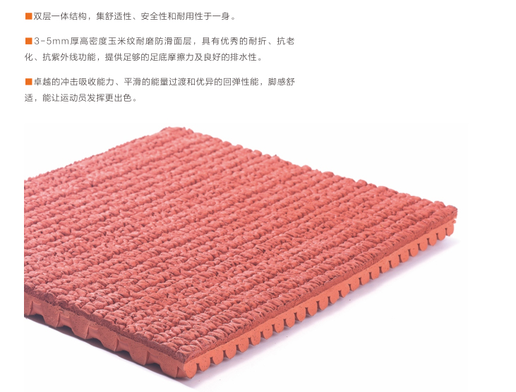 1.面層與底層材質相同,采用天然橡膠優制而成,綠色環保;