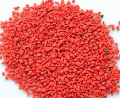 具有顏色柔和和彈性高等特點(diǎn),摻入塑膠場(chǎng)地中,能防止刺眼光線的反射。