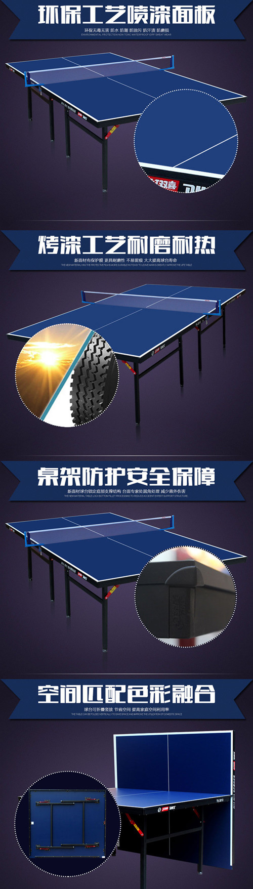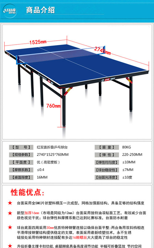 獨特設計室內比賽球桌,桌面和桌腳新增支撐斜檔,比普通移動型球桌更多加固支撐,更加穩固。