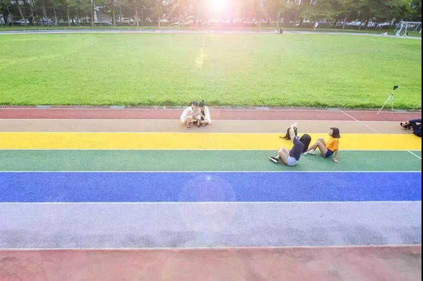 如果說(shuō)藍(lán)色塑膠跑道可以使人平靜,那彩虹跑道帶來(lái)的除了驚喜就是驚喜了;