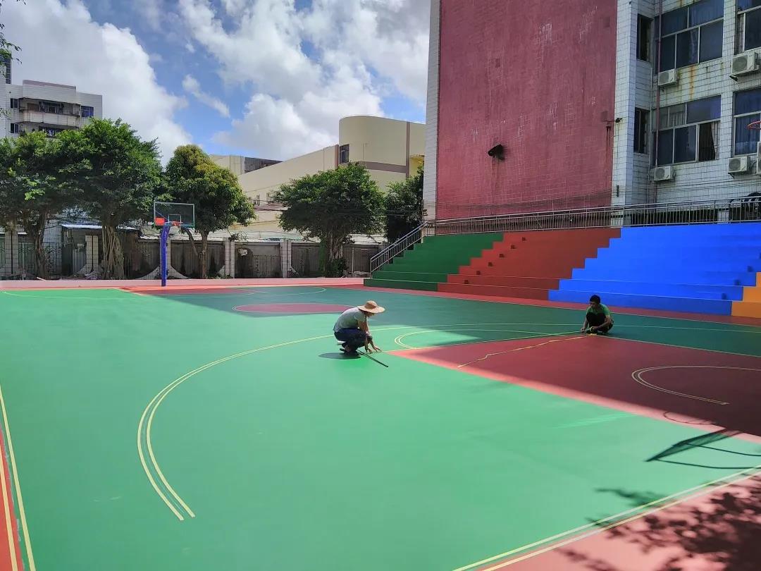 3月6日,籃球場(chǎng)翻新改造項(xiàng)目正式動(dòng)工,工作人員拆除原有的水泥地面,鋪設(shè)塑膠地面,更換防撞地墊;鏟除觀(guān)看臺(tái)側(cè)面墻磚,并重新貼磚噴涂......除了地面的升級(jí)外,球場(chǎng)圍界立柱預(yù)留的燈架上,也安裝上照明設(shè)施,原來(lái)的水泥籃球場(chǎng)成為標(biāo)準(zhǔn)燈光球場(chǎng),方便晚上的社區(qū)居民運(yùn)動(dòng)。