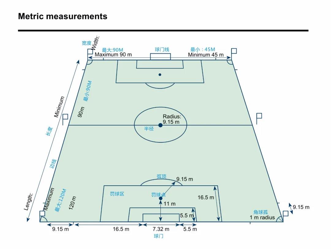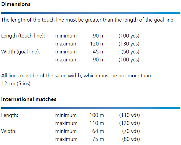 長度:最短100米(109碼) 最長110米(120碼)