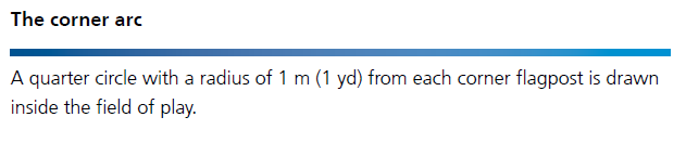 在比賽場地內(nèi),以每個角旗桿為圓心,畫一個半徑為1米(1碼)的四分之一圓。