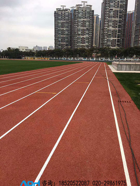 3、混合型塑膠跑道面層含聚氨脂材料較多,因此彈性要比其余兩種類型跑道要好些。具有較高的專業性,加之聚氨酯原材料價格昂貴,一般用于專用體育場及大中專院校田徑場;采用國際田聯認可的混合結構,符合國際賽事標準,適用于各類學校運動場地。